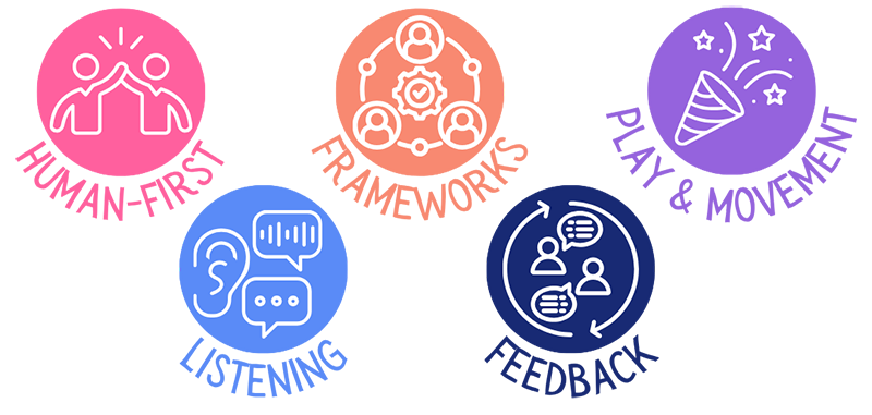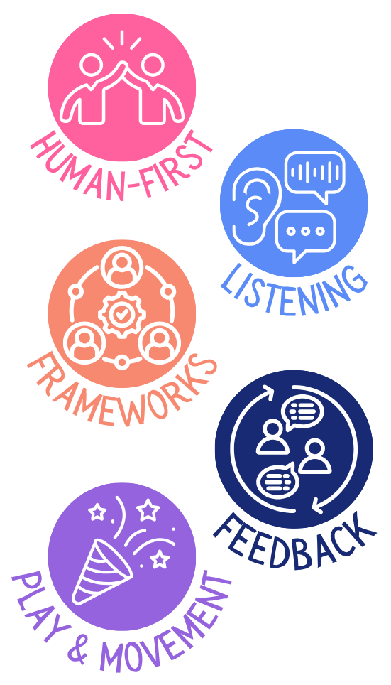 • Story-based connection tools that help people feel seen as humans, not just roles
